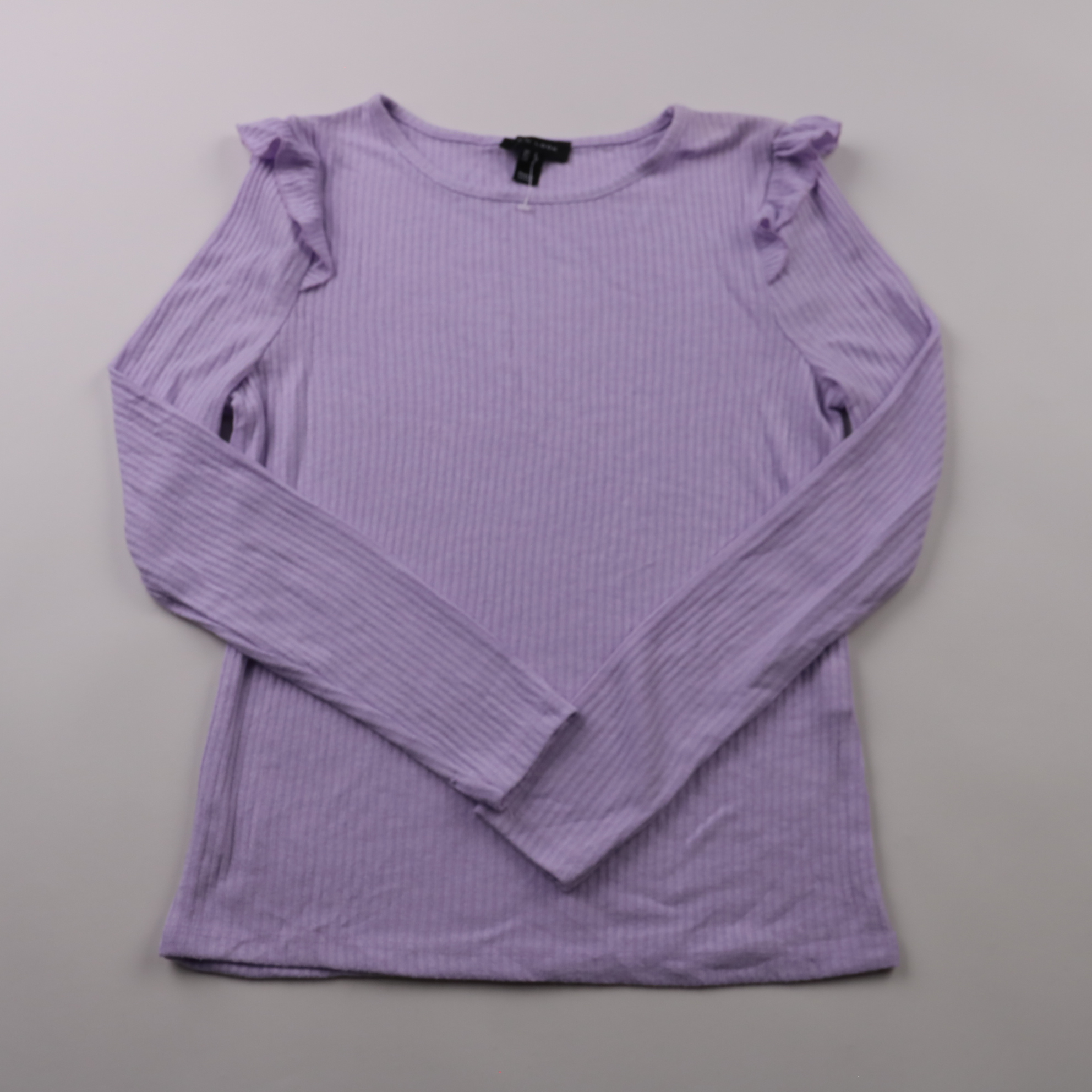 Лонгслив-блузка New Look сиреневого цвета из мягкого ребристого трикотажа с небольшими оборками на плечах. Подойдёт для повседневных образов и офиса в стиле casual, легко сочетается с джинсами или юбкой. Материал эластичный и не требует сложного ухода.