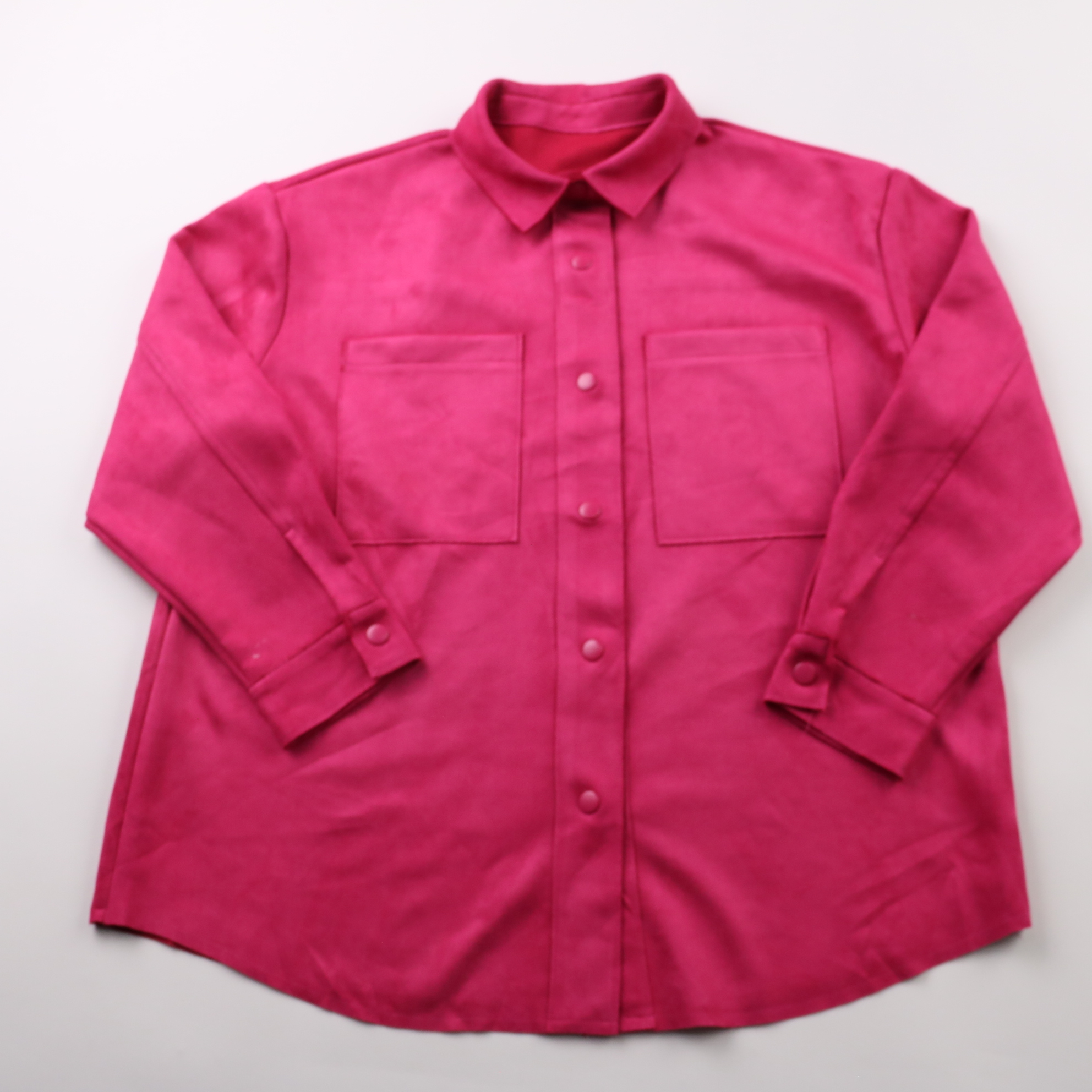 Женская рубашка насыщенного розового цвета с отложным воротником и застёжкой на кнопки, спереди два накладных кармана. Подойдёт для повседневных образов и офиса в сочетании с джинсами или брюками. Практична тем, что легко надевается и быстро застёгивае...