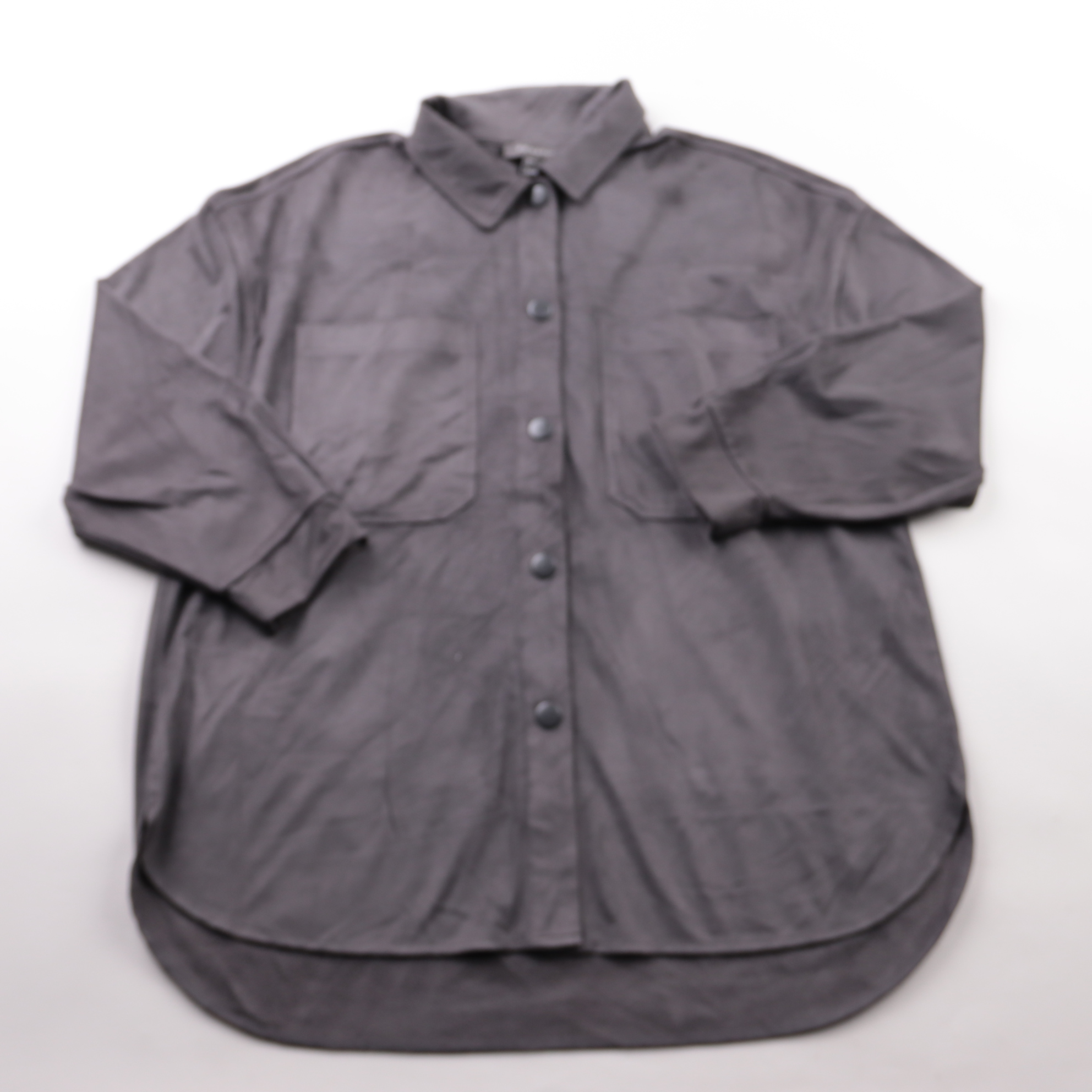 Женская рубашка Primark в тёмно-сером цвете, мягкая и приятная к телу. Подойдёт для повседневных образов и офиса, можно носить как верхний слой на топ или футболку. Практична в уходе и хорошо сочетается с базовым гардеробом.