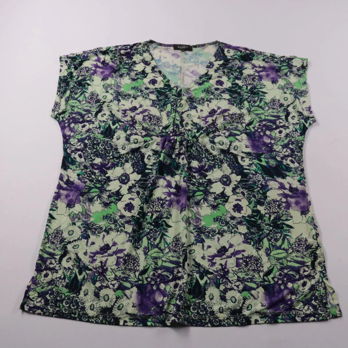 Женская блузка Bexleys Woman с цветочным принтом и V-образным вырезом, короткий рукав. Подойдёт для повседневных образов и офиса в тёплое время года или как слой под кардиган. Ткань эластичная и почти не мнётся, удобно носить целый день.