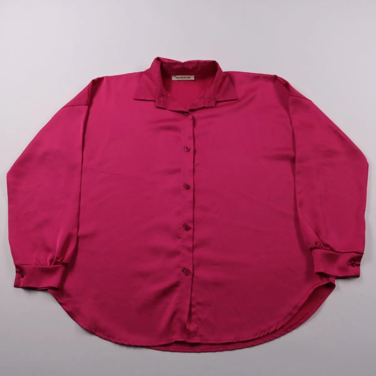 Блузка New Collection насыщенного розового цвета с отложным воротником и застёжкой на пуговицы. Подойдёт для офиса и повседневных образов, можно носить навыпуск благодаря удлинённой округлой спинке. Ткань выглядит гладкой и слегка струящейся, удобно комбинируется с брюками и юбками.