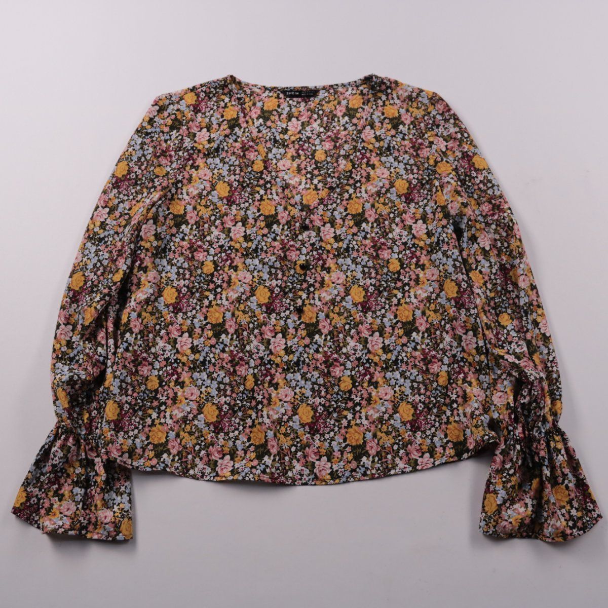 Женская блузка Shein с цветочным принтом и V-образным вырезом, рукава длинные с расклешёнными манжетами. Подойдёт для повседневных образов и на выход с джинсами или юбкой в любое время года. Лёгкая ткань и свободный крой не сковывают движения.
