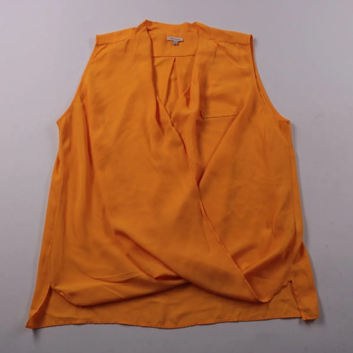 Блузка River Island оранжевого цвета без рукавов, с запахом и V-образным вырезом, есть накладной карман на груди. Подойдёт для лета и тёплой погоды, легко сочетается с джинсами, шортами или юбкой. Материал из 100% полиэстера почти не мнётся и быстро сохнет.