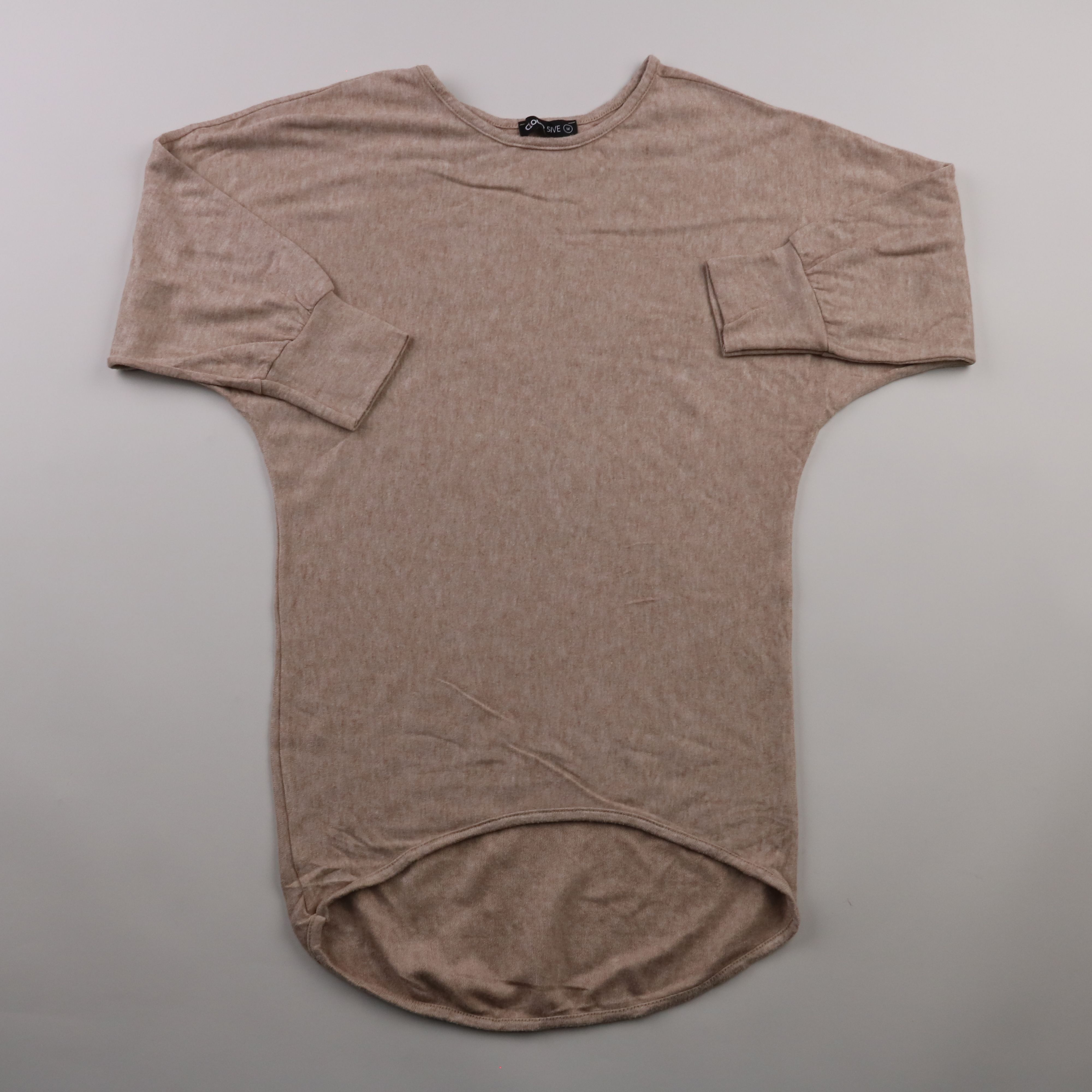 Женский лонгслив Cloud 5ive в спокойном бежевом оттенке, с свободным кроем и удлинённой округлой спинкой. Подойдёт для повседневных образов и как слой под куртку в прохладную погоду. Мягкий трикотаж приятен к телу и не стесняет движений.