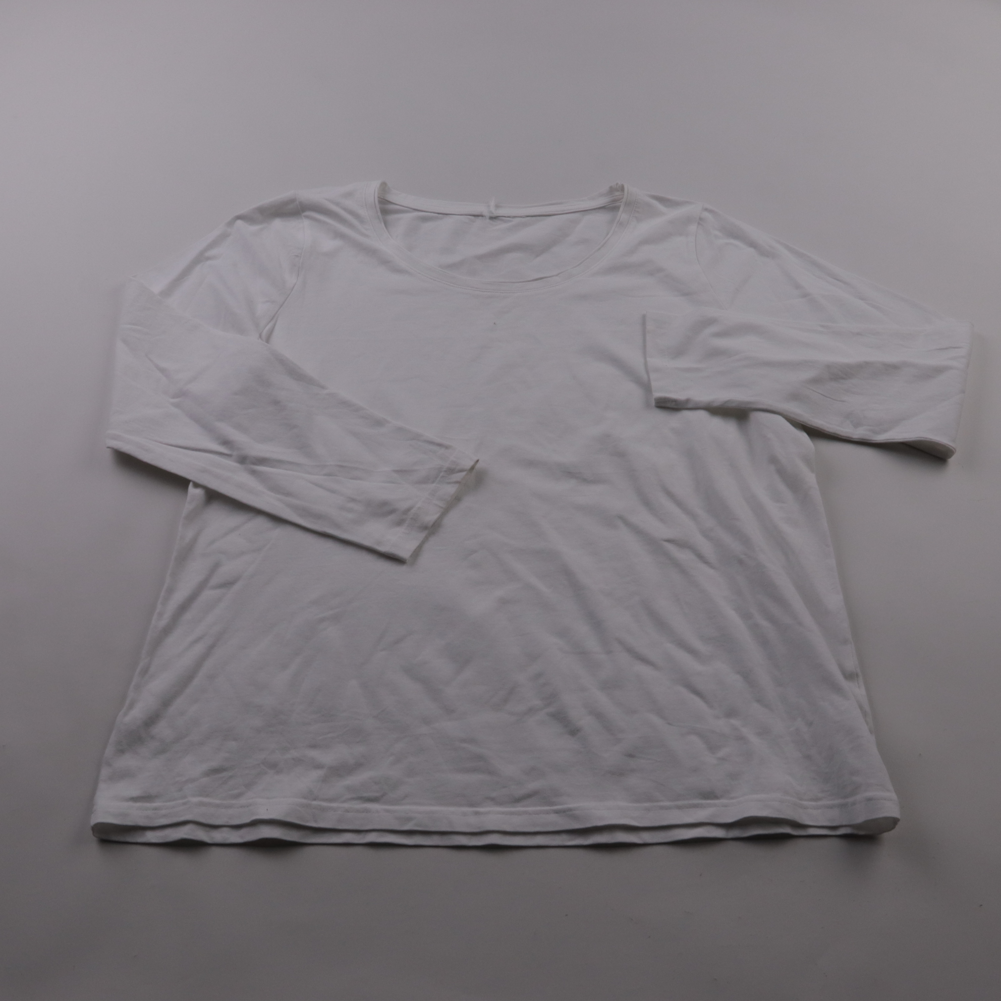 Белый женский лонгслив без видимого бренда, с округлым вырезом и базовым прямым силуэтом. Подойдёт для повседневных образов, как самостоятельный верх или как нижний слой под жакет/кардиган. Практичное преимущество — нейтральный цвет легко сочетается с ...