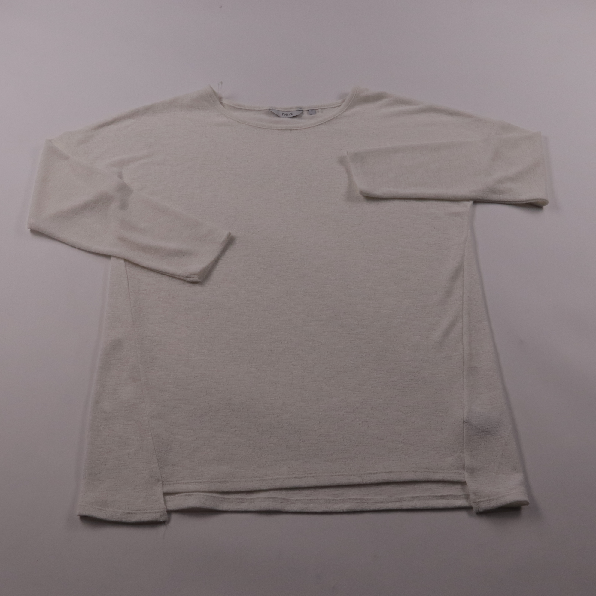 Лонгслив Next молочного цвета с круглым вырезом и прямым кроем. Подойдёт для повседневных образов и как базовый слой в прохладную погоду. Ткань с эластаном тянется и комфортно садится по фигуре.