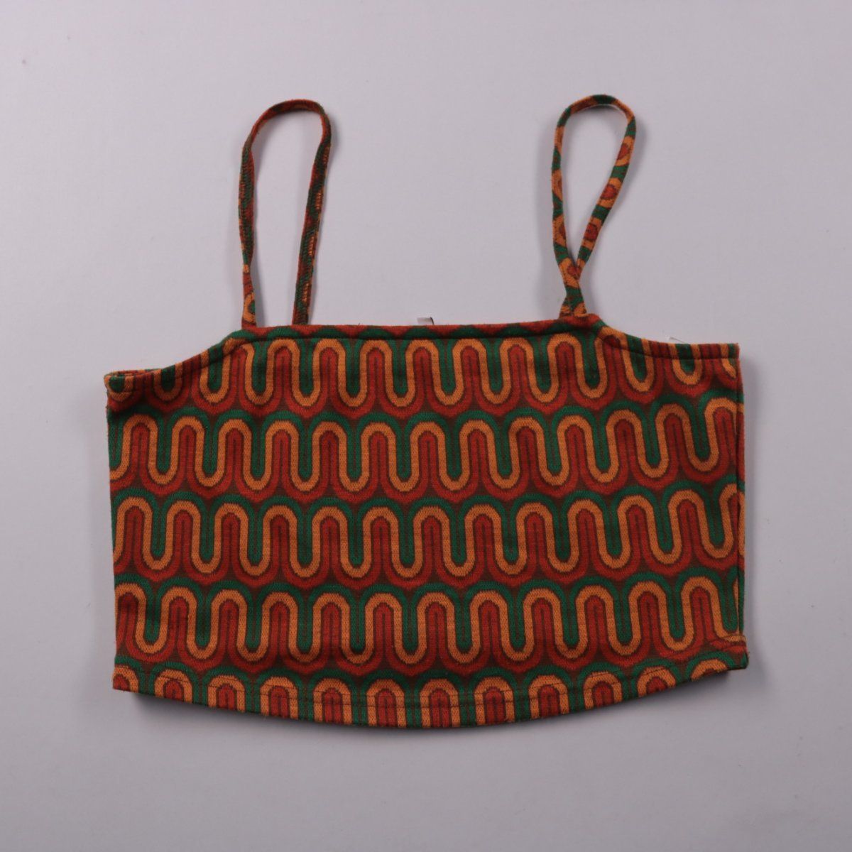 Женский кроп-топ ONLY на тонких бретелях с ярким геометрическим принтом. Подойдёт для лета и отдыха, хорошо сочетается с джинсами, шортами или юбкой с высокой посадкой. Эластичная ткань тянется и комфортно садится по фигуре.