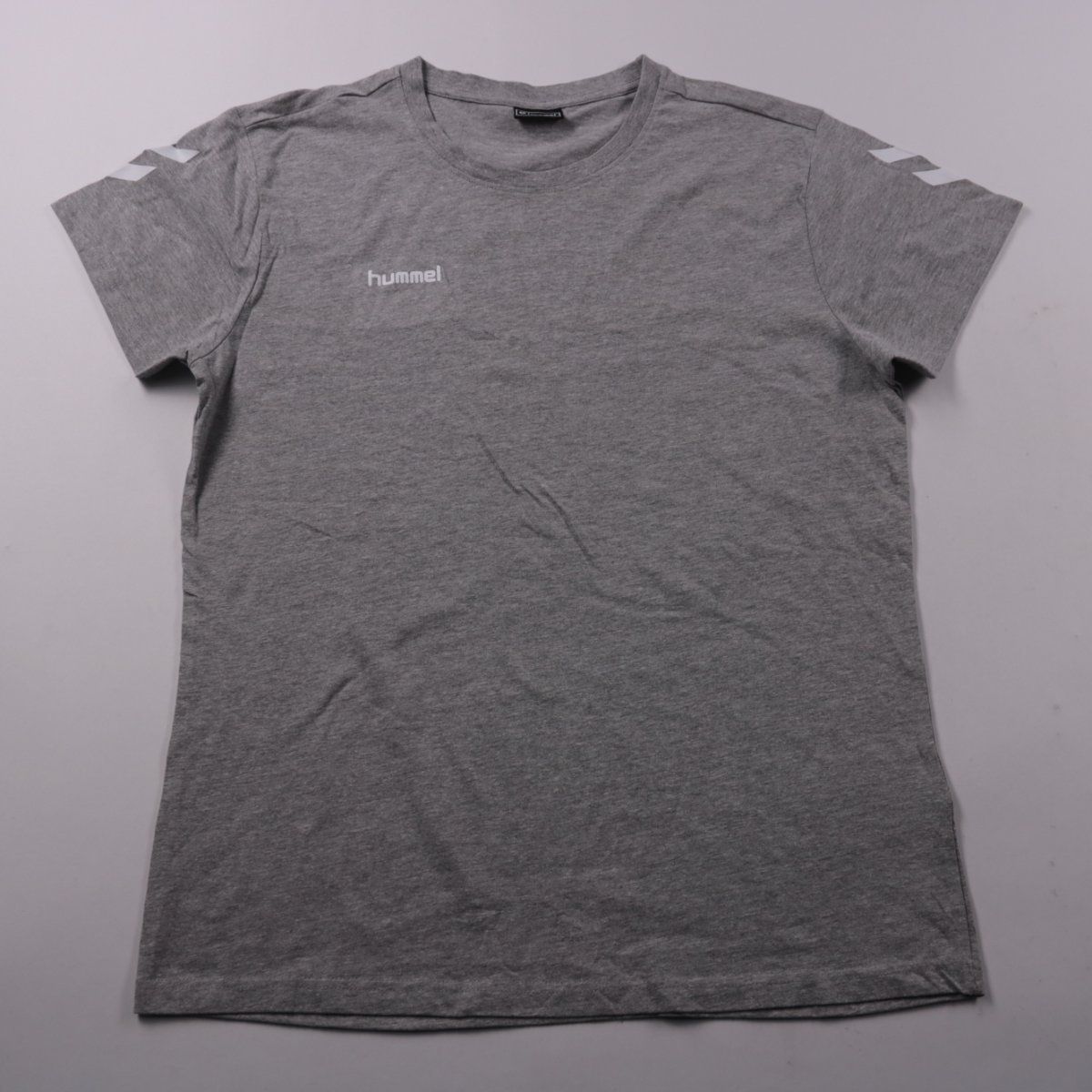 Футболка Hummel серого меланжевого цвета с лаконичным логотипом на груди и фирменными шевронами на рукавах. Подойдёт для тренировок, прогулок и повседневной носки. Материал с хлопком комфортен и прост в уходе.