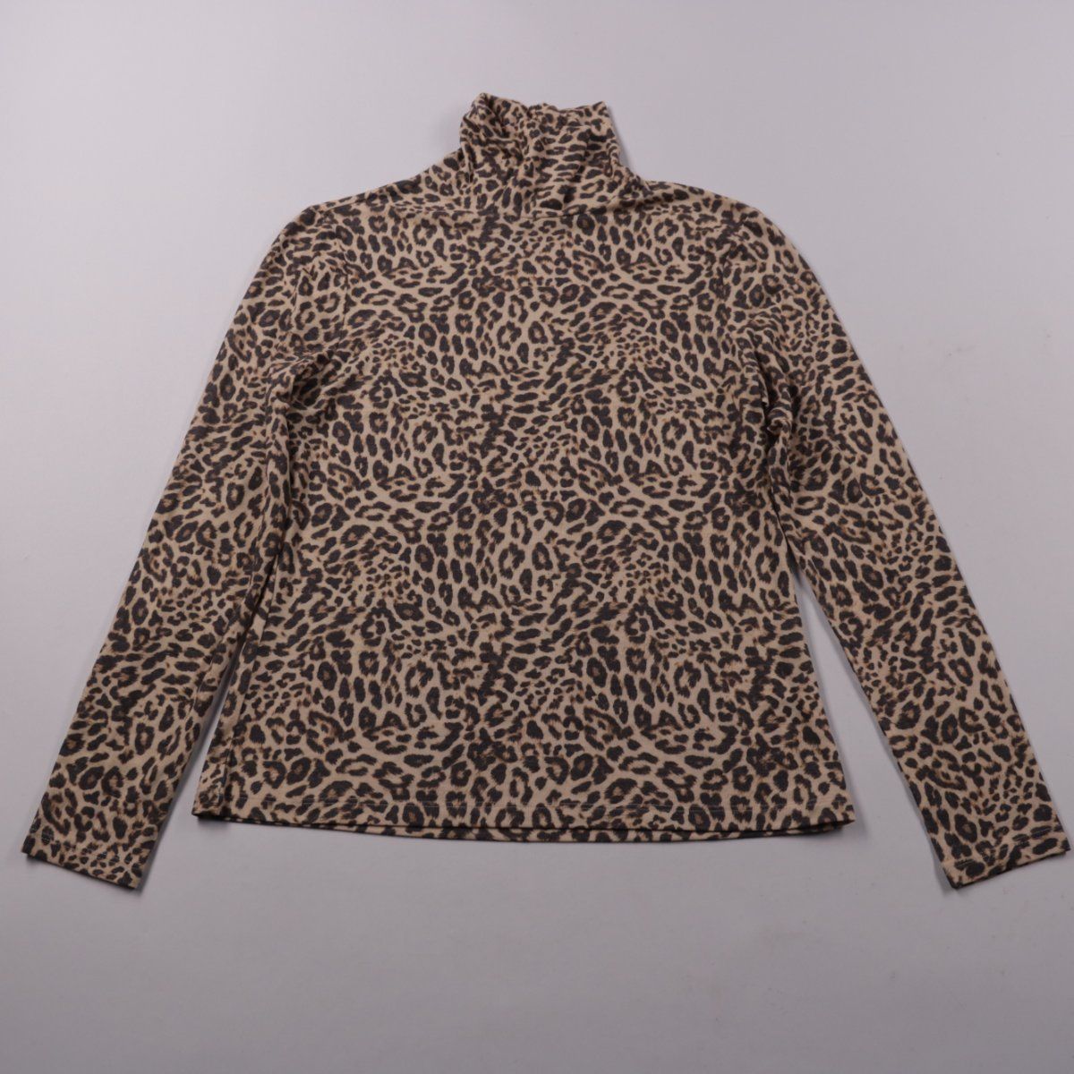 Женский лонгслив George с воротником-стойкой и леопардовым принтом в бежево-чёрной гамме. Подойдёт для повседневных образов в прохладную погоду, хорошо смотрится с джинсами и однотонными брюками. Эластичная ткань комфортно тянется и не сковывает движения.