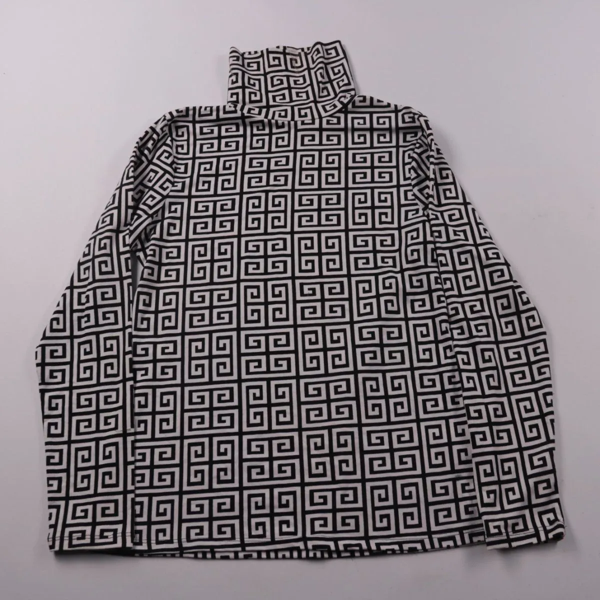 Женский лонгслив Pep&Co с высоким воротником и графичным чёрно-белым принтом. Подойдёт для повседневных образов и как базовый слой в прохладную погоду. Эластичная ткань хорошо тянется и не сковывает движения.