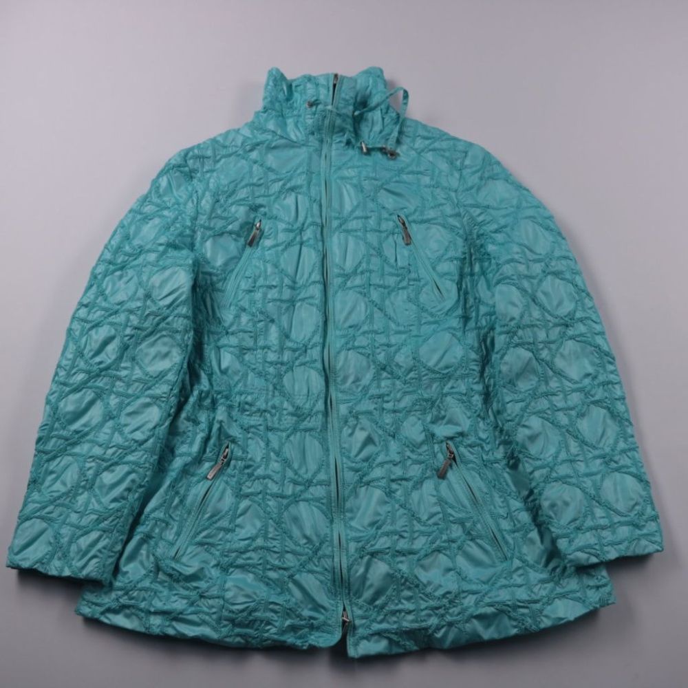 Стёганая демисезонная куртка Bonita бирюзового цвета с высоким воротником и молнией по всей длине. Подойдёт для прохладной весны и осени, есть карманы на молнии для мелочей. Лёгкая и быстро сохнет благодаря полиэстеру.