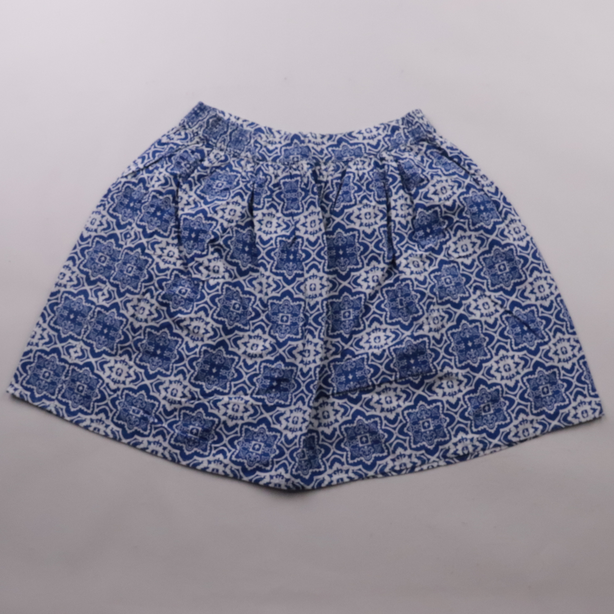 Юбка Atmosphere из 100% хлопка, бело-синяя с орнаментальным принтом и мягкими складками на талии. Подойдёт для летних прогулок и отдыха, легко сочетается с однотонными топами и футболками. Хлопок хорошо дышит и комфортен в жару.