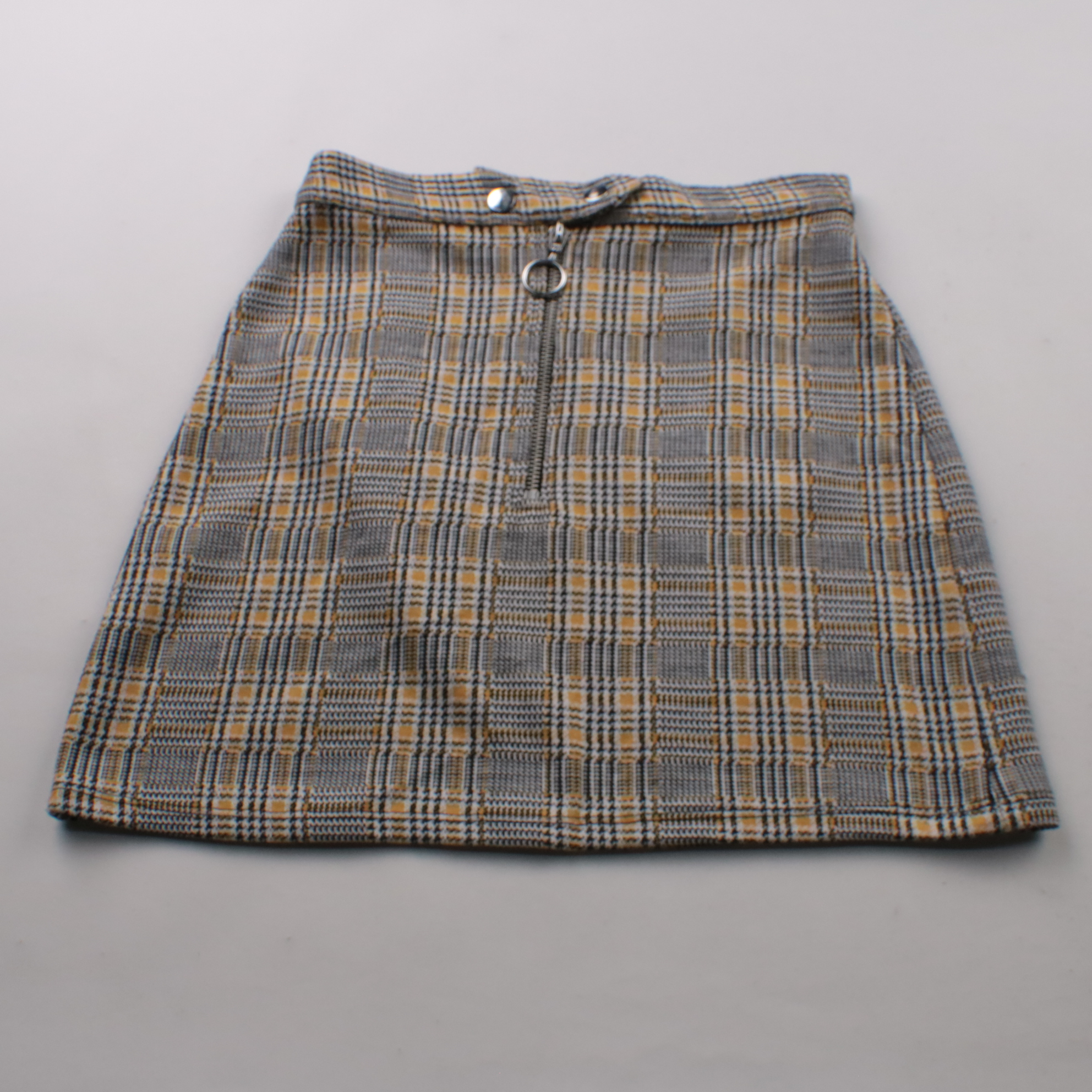 Юбка Topshop Petite в серую клетку с горчичными акцентами и молнией спереди с кольцом. Подойдёт для повседневных образов и офиса, хорошо смотрится с водолазками и однотонными рубашками. Плотная ткань держит форму и удобна в носке.