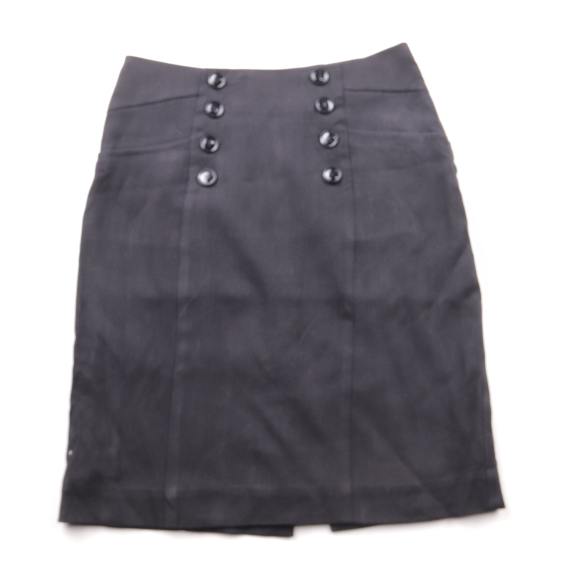 Юбка H&M чёрного цвета с высокой посадкой и декоративными пуговицами спереди. Подойдёт для офиса и повседневных образов с рубашкой, водолазкой или жакетом. Ткань с добавлением эластана комфортно садится по фигуре и не сковывает движения.