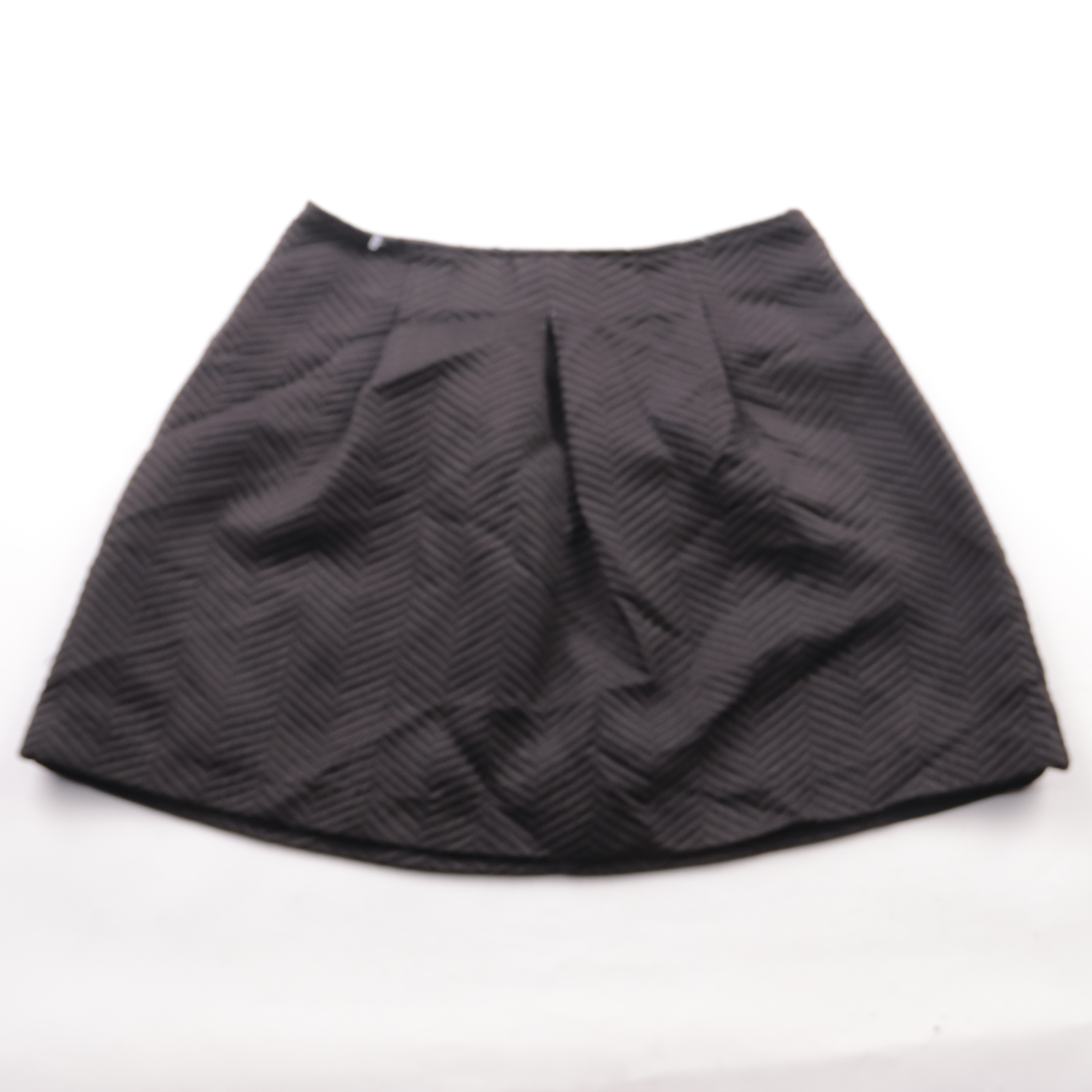 Юбка FB Sister чёрного цвета с фактурным узором «ёлочка» и мягкими складками для объёма. Подойдёт для повседневных и офисных образов с водолазкой или блузой. Материал из полиэстера практичен: почти не мнётся и легко ухаживается.