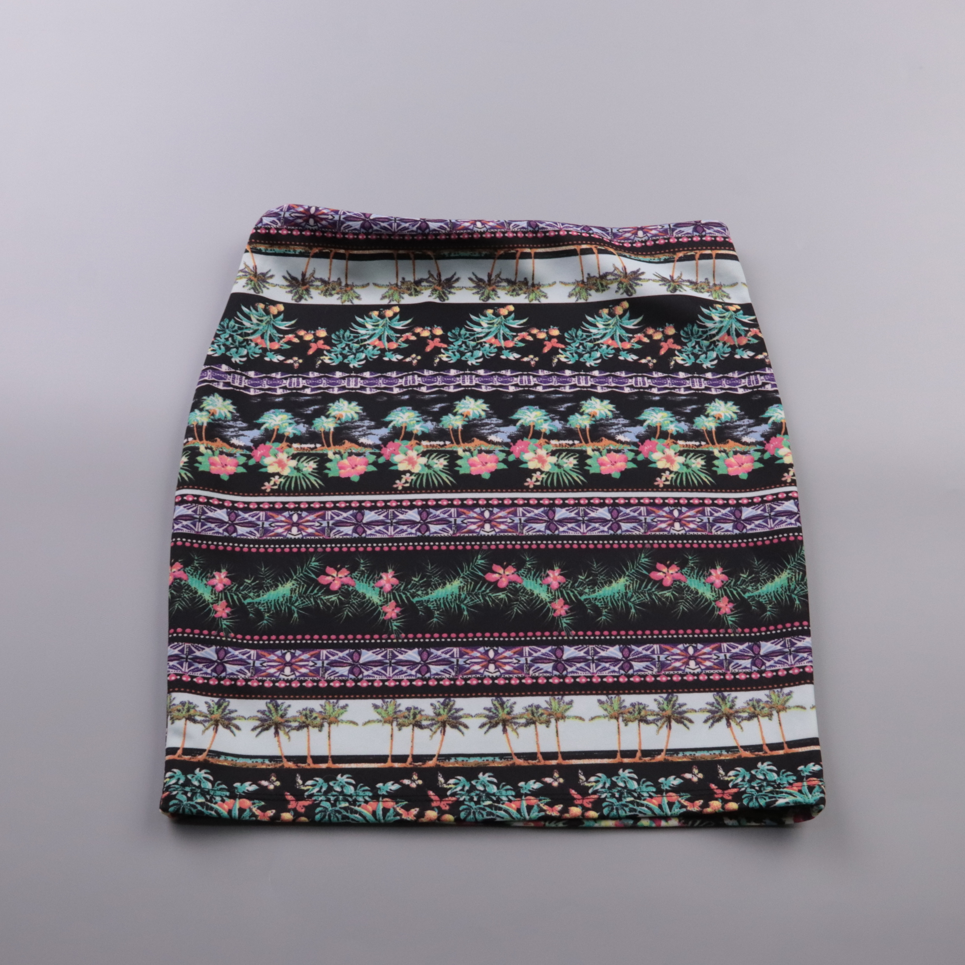 Юбка Bershka с ярким тропическим принтом и прилегающим силуэтом. Подойдёт для лета и отдыха, хорошо сочетается с однотонными топами и футболками. Лёгкая ткань быстро сохнет и не занимает много места в чемодане.